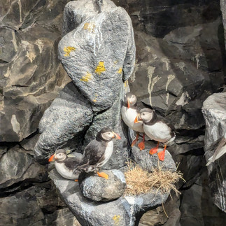 which had some interesting displays about Nordkapp's role in WWII, a small museum dedicated to King Chulalongkorn, the Thai king who visited Nordkapp in 1907, and The Cave of Lights which showed how the Northcape looks during its four seasons. There was a film but its timing was such that had we watched it we would have missed our bus back to Honnigsvåg. There was also a display of sea birds of the North Cape, complete with streaks of dripping guano on the rocks.